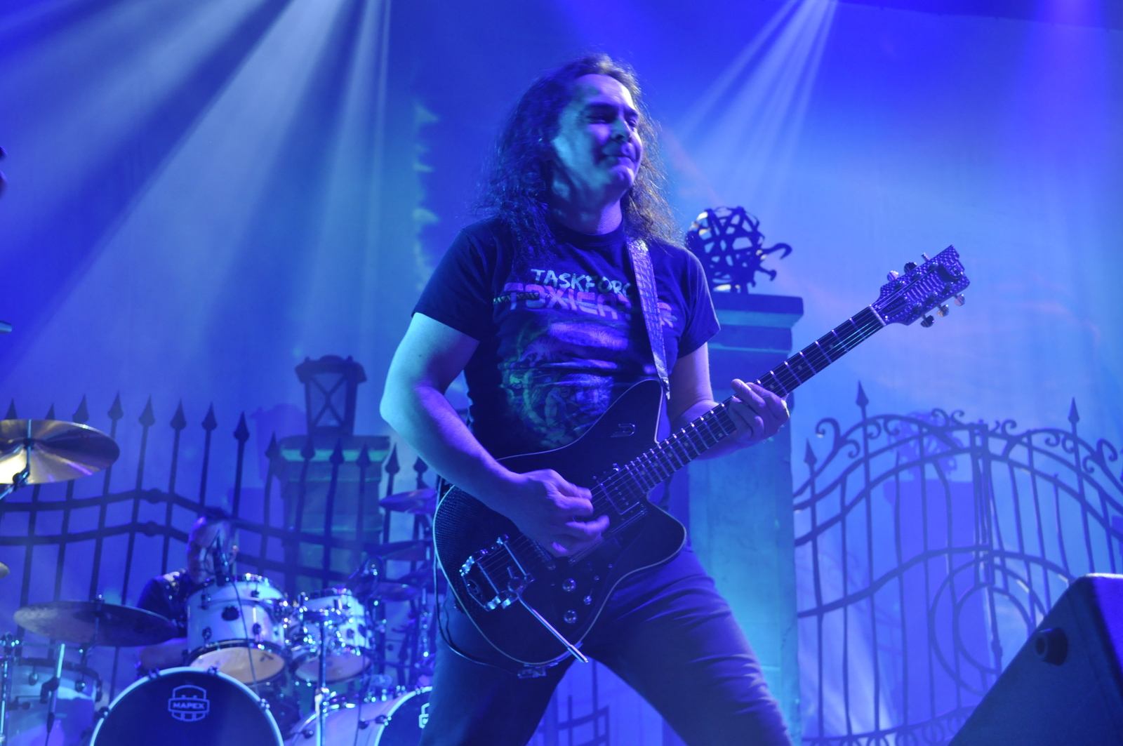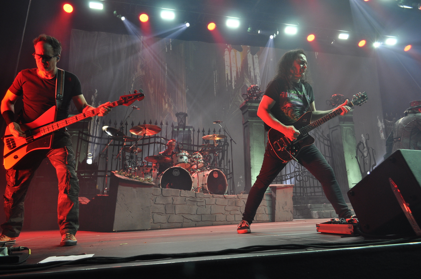 Lavadekoratsioonid olid enamjaolt küll samad, mis aasta tagasi. Taustal “raudvarrastest aialipid” ja laternatega postid. Analoogseid elemente on oma showdes varem kasutanud King Diamond ja Heaven & Hell (Black Sabbath Dioga). Suured toimuvaga haakuvad koloriitsed taustapildid vaheldusid üpris sagedasti ja mingil hetkel toimetati lavale korraks isegi troon (“et Sammet saaks vahepeal jalgu puhata”) ning hiljem klaver. Oma klaverimänguoskusi Sammet ei kiitnud, kuid publiku arvates tuli tal selle mängimine ikkagi päris hästi välja.