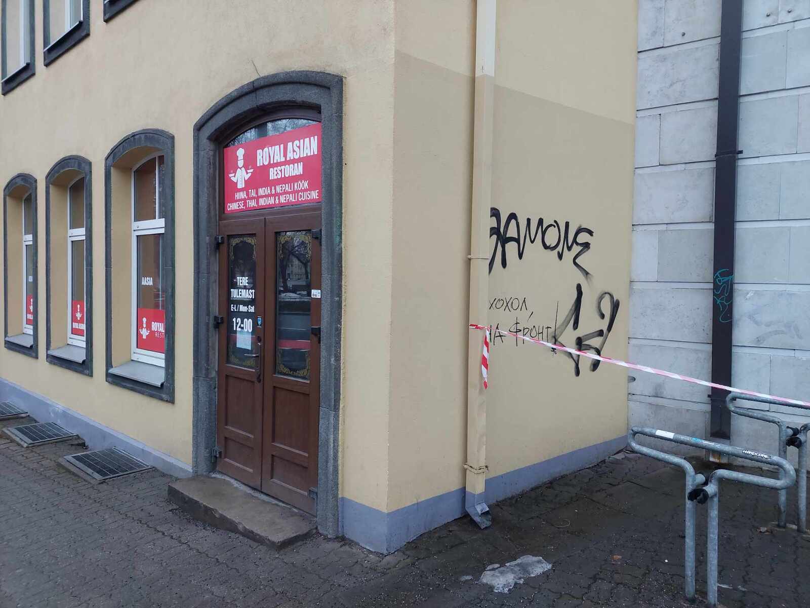 Nelli Teataja lugeja märkas Tallinna linnavalitsuse lähistel Kaarli puiestee majade seintel soditud murettekitavaid sõnumeid. Need õhutavad viha rahvuse põhjal.