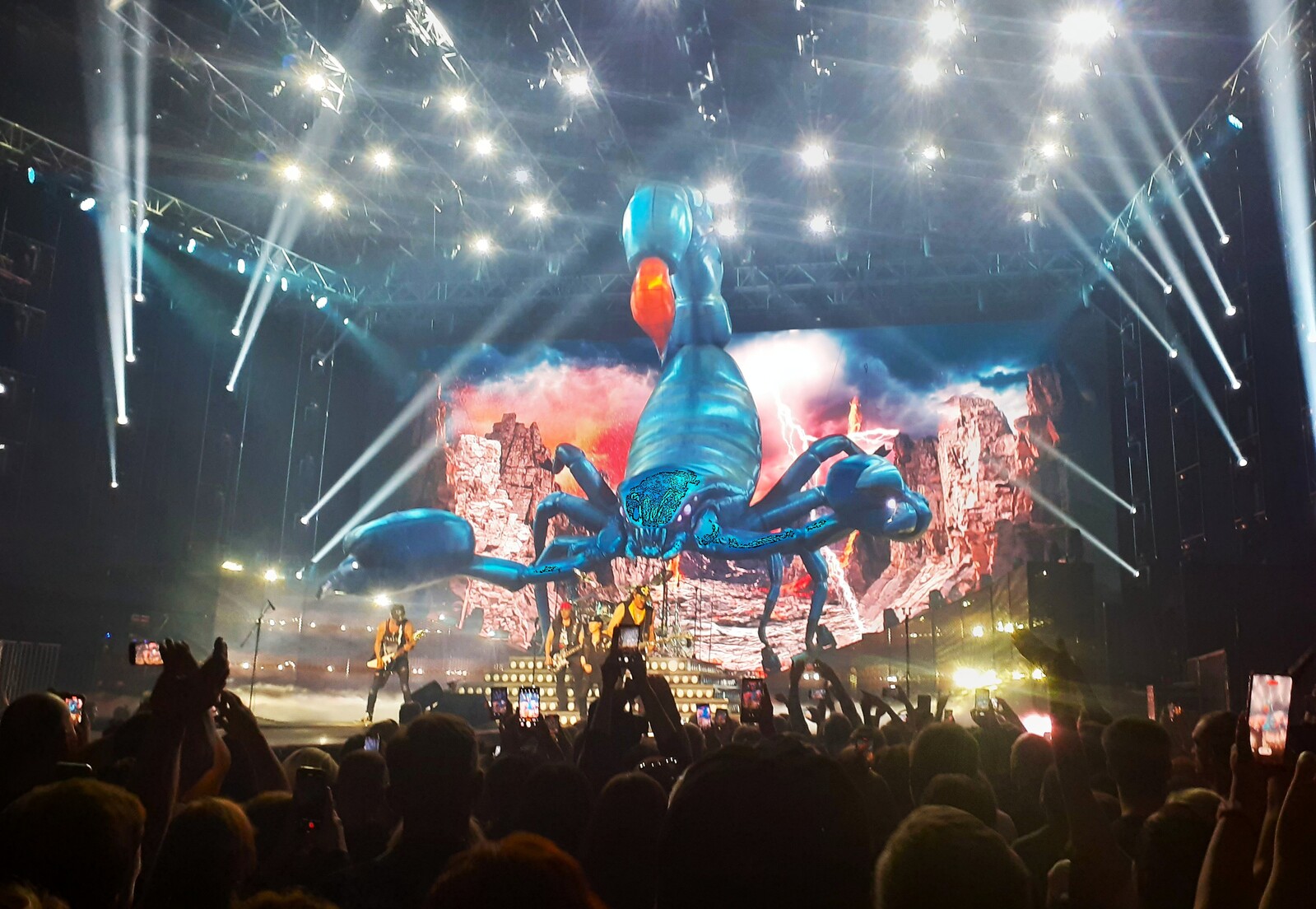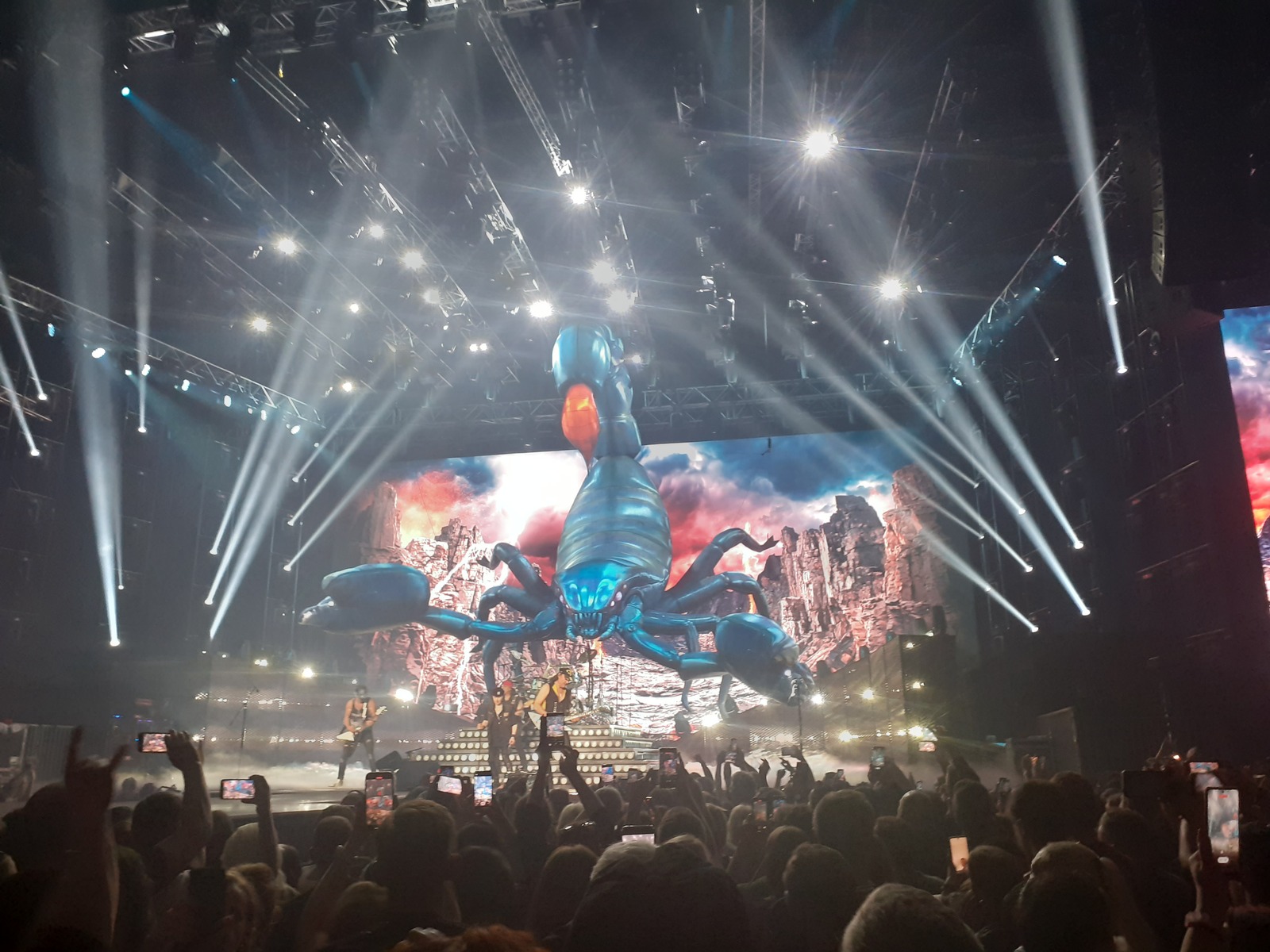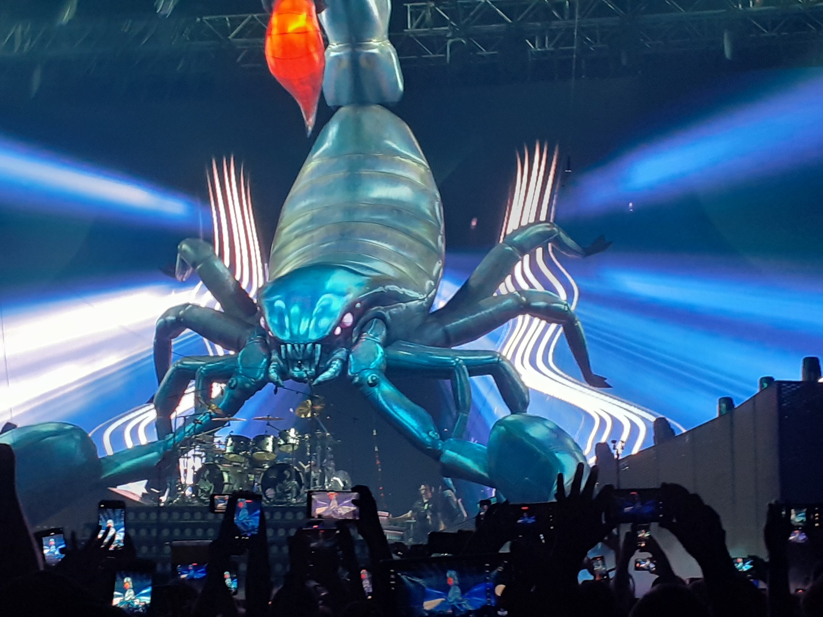 Korraks lavalistest trikkidest, lavalisest atribuutikast rääkides. Täiesti uudse ilminguna kerkis kontserdi lõpus trummikomplekti tagant mõneks ajaks hiiglaslik kurjailmeline skorpion, kes vehkis oma „labadega”.