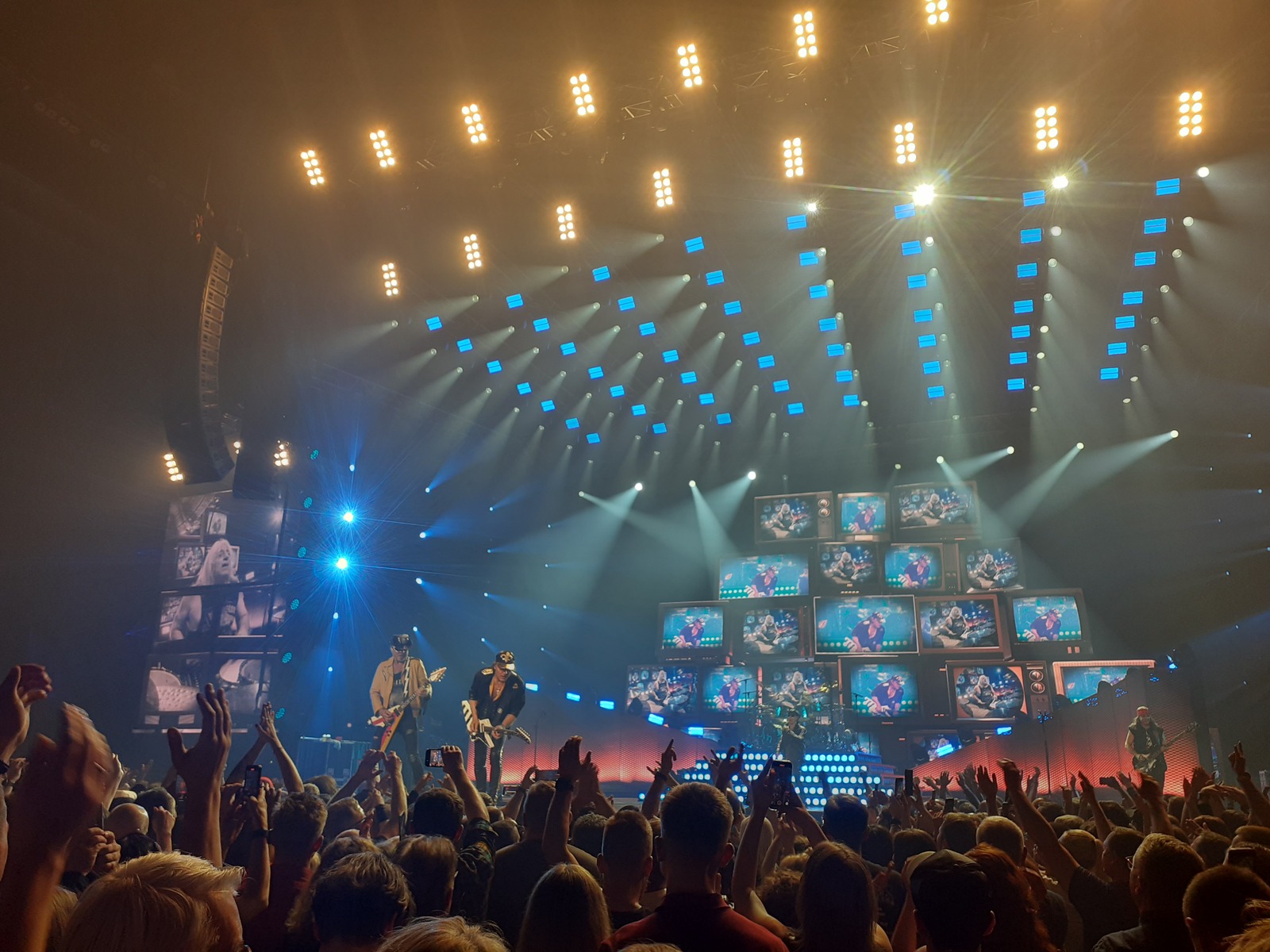 Lisafaktid. Kui õigesti meelde jäi, siis müünud on nad karjääri jooksul üle 120 miljoni albumi, esinenud 83 riigis ja andnud ühtekokku üle 2 500 kontserdi. Suursugune ja suurejooneline, täiuslikulähedane show algusest peale, kuigi mõnel korral kontserdi jooksul võis märgata, et laulja Klaus Meine (korraks ilmus lavale kitarrigagi ning mingil ajal hoidis laval käes tamburiinigi) hääl polnud enam päris hiilgeaegade tasemel ning kogu kollektiivi lavaline liikumine oli vähem energiline, vähem pöörane.