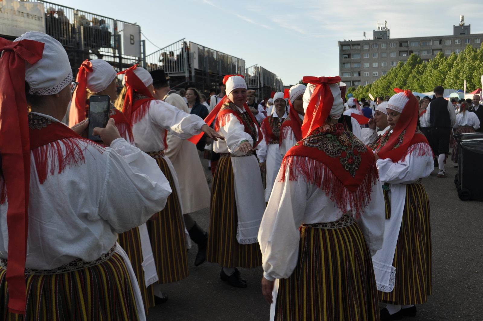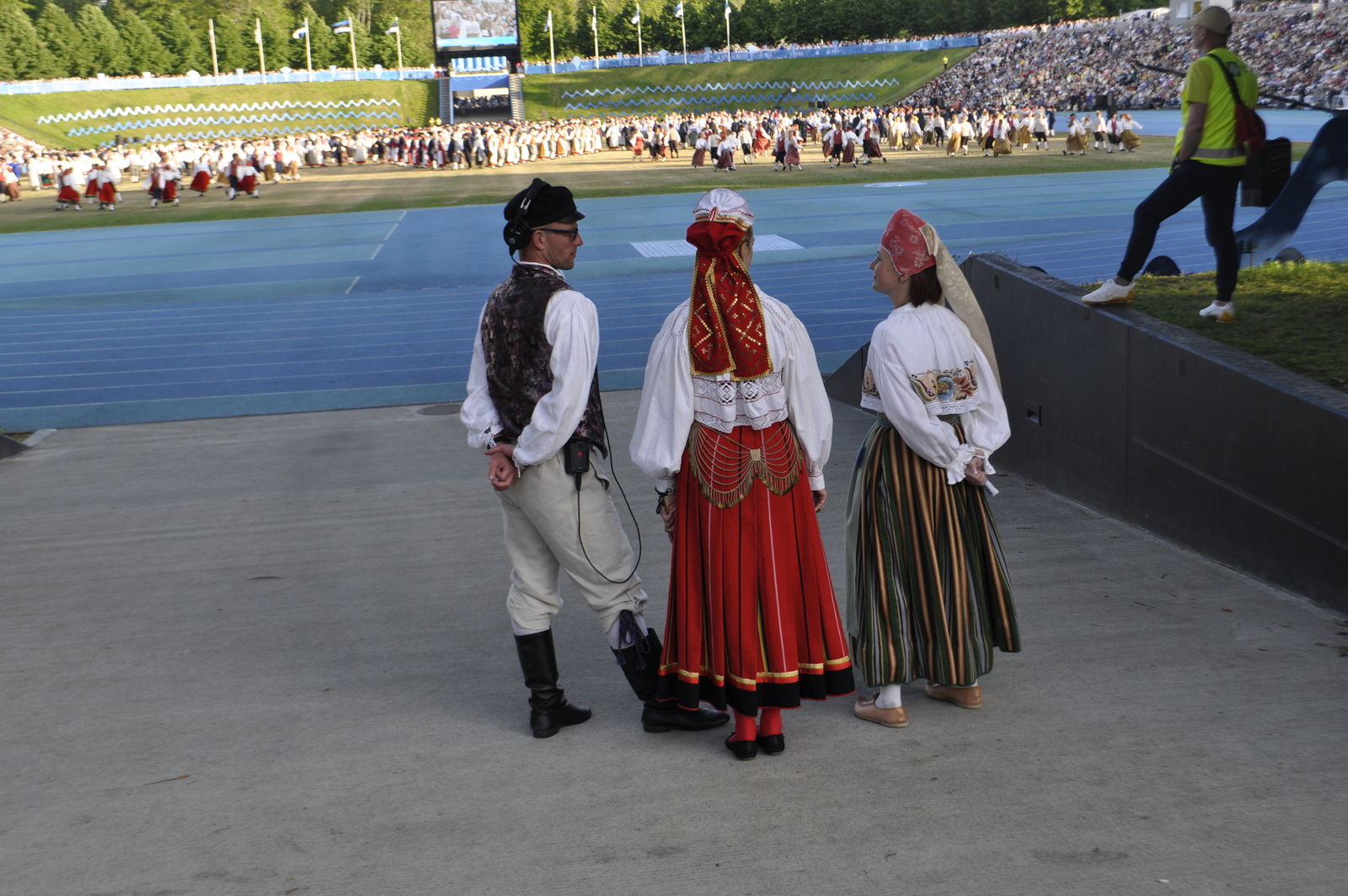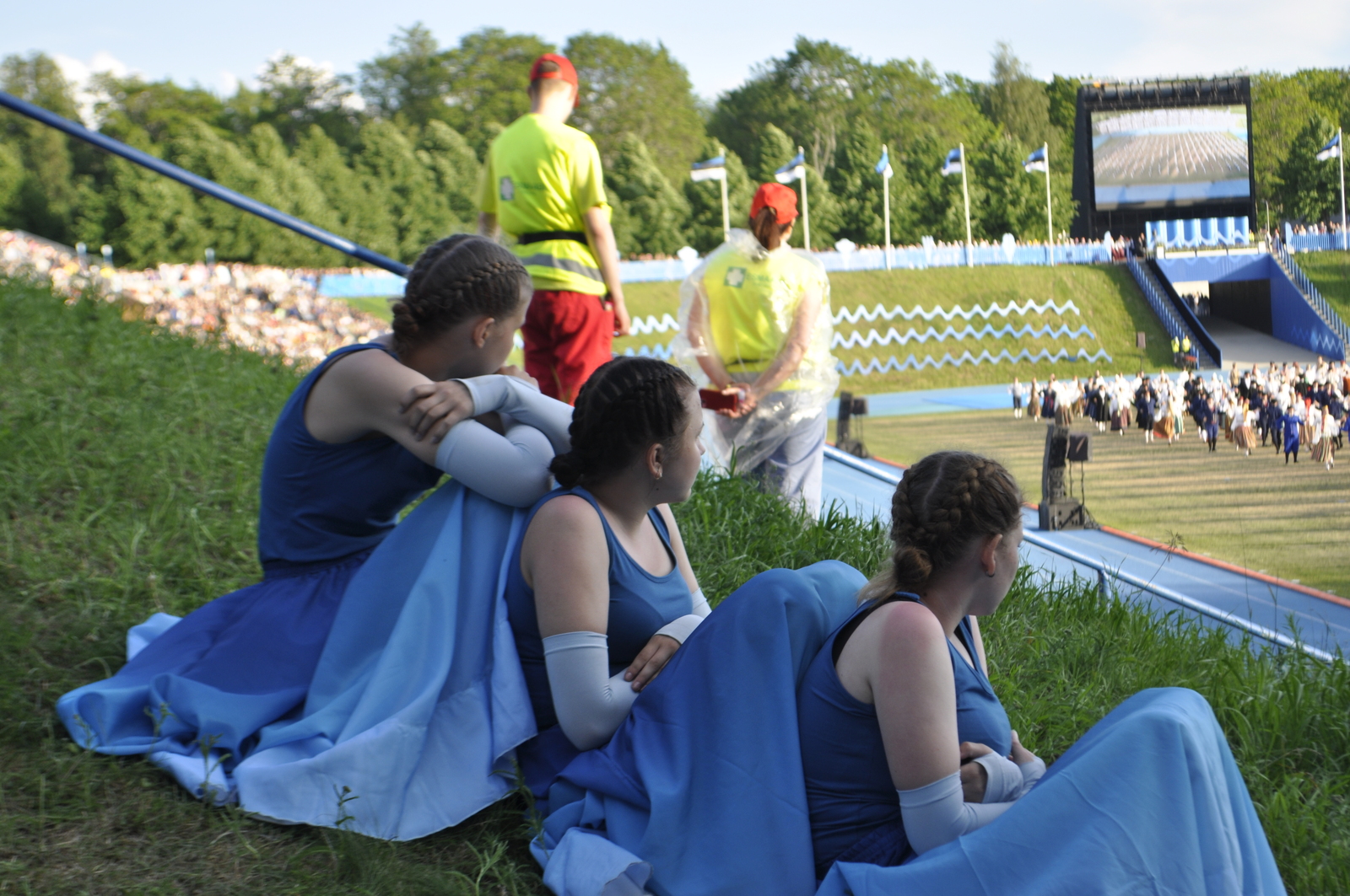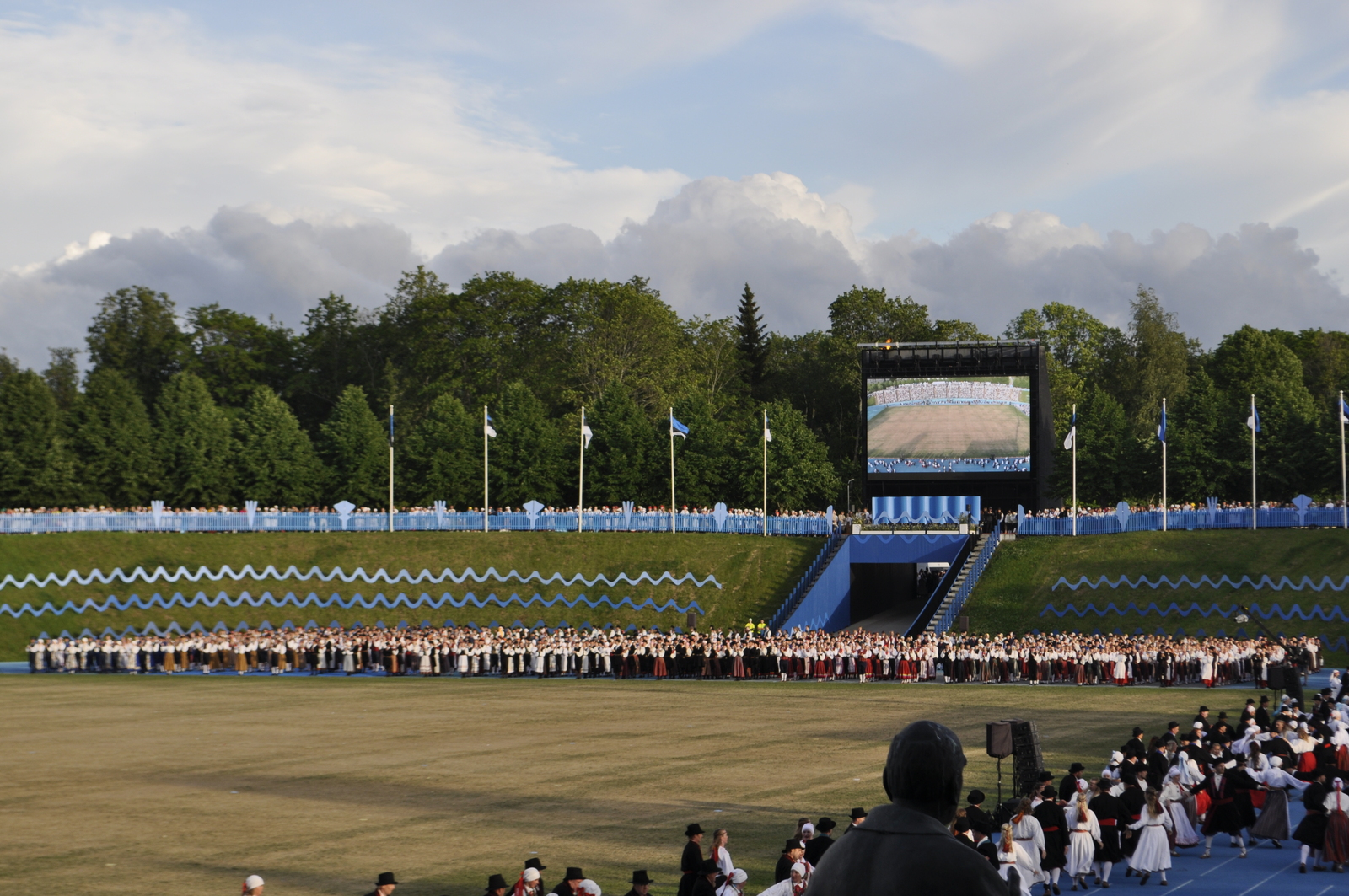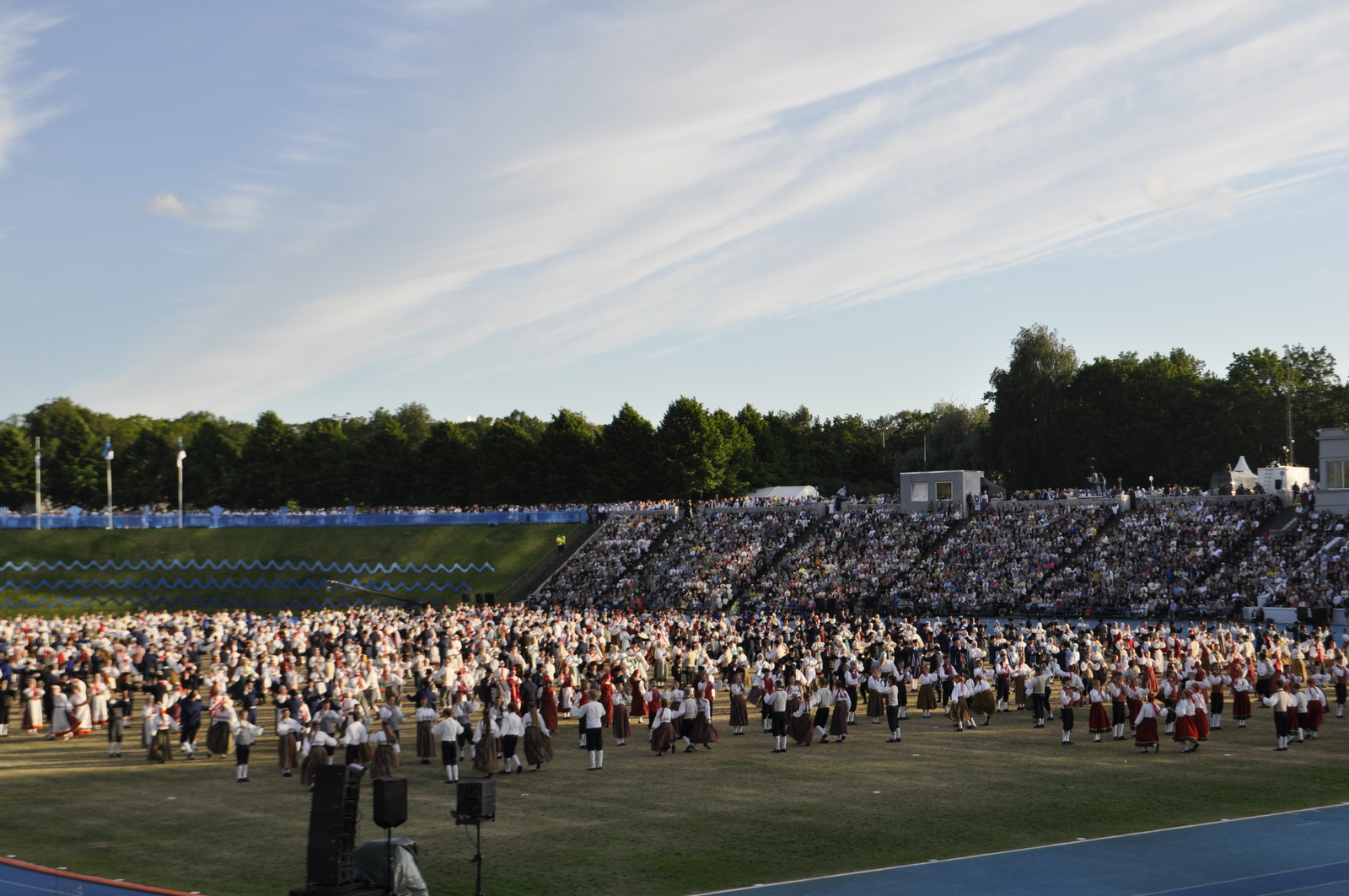 Tuttav kuuekümnendates soomlane Kari (kes juba korduvalt meie laulu-ja tantsupidudel käinud) ja veel vähemalt paarkümmend huvilist avastasid aga Kalevi Keskstaadioni ühe külje peal väikese “katmata” ala, kus praktiliselt mitte miski ei takistanud tantsupeo programmist täiesti korralikku ülevaadet saamast. Tasuta, mitte midagi maksmata!