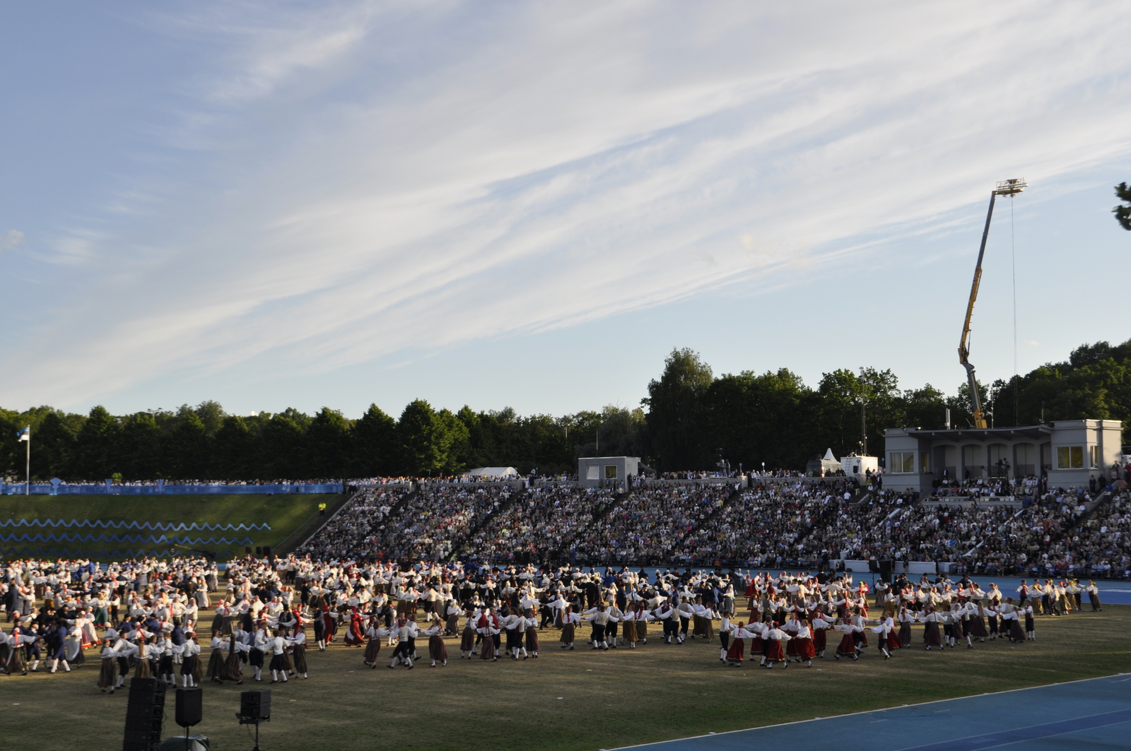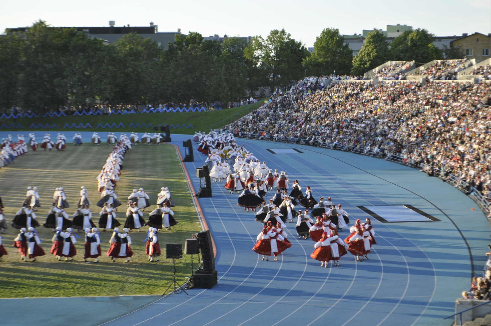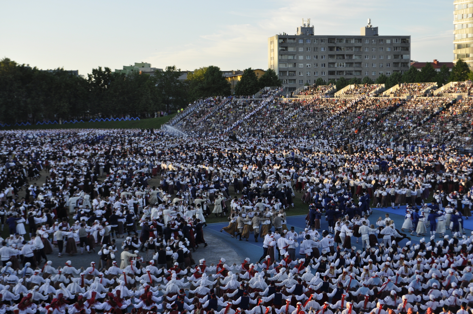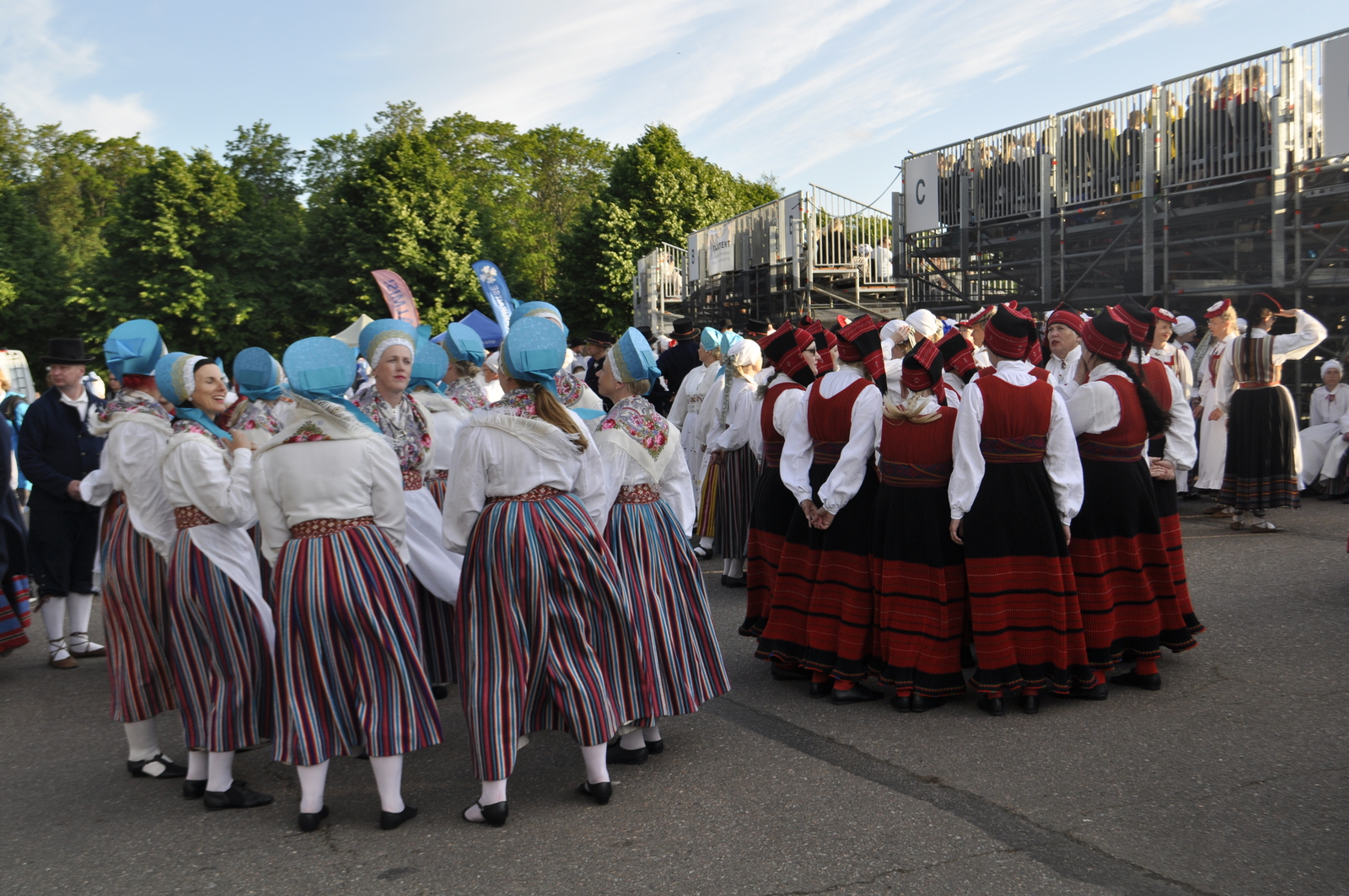 Tuttav kuuekümnendates soomlane Kari (kes juba korduvalt meie laulu-ja tantsupidudel käinud) ja veel vähemalt paarkümmend huvilist avastasid aga Kalevi Keskstaadioni ühe külje peal väikese “katmata” ala, kus praktiliselt mitte miski ei takistanud tantsupeo programmist täiesti korralikku ülevaadet saamast. Tasuta, mitte midagi maksmata!