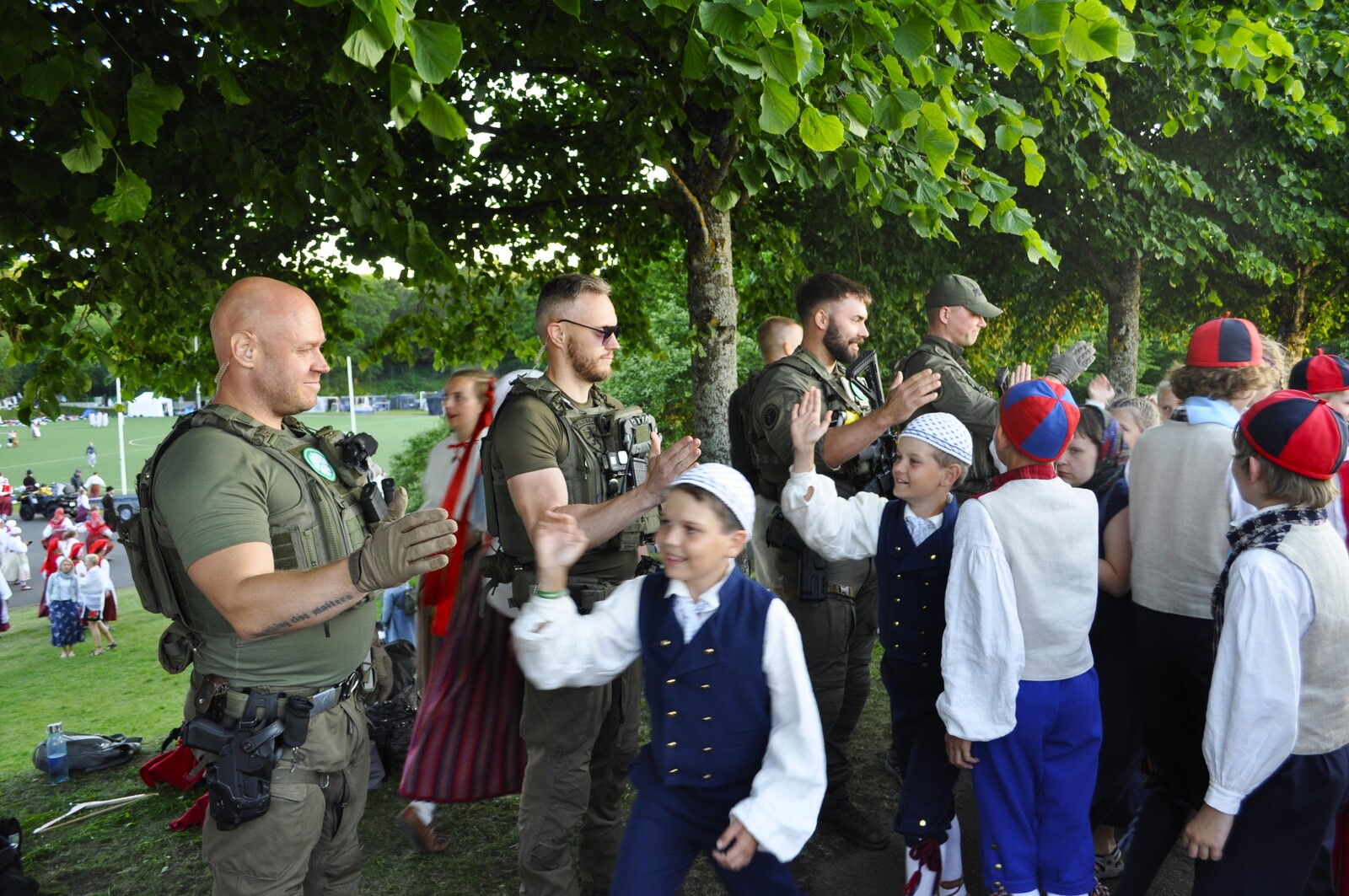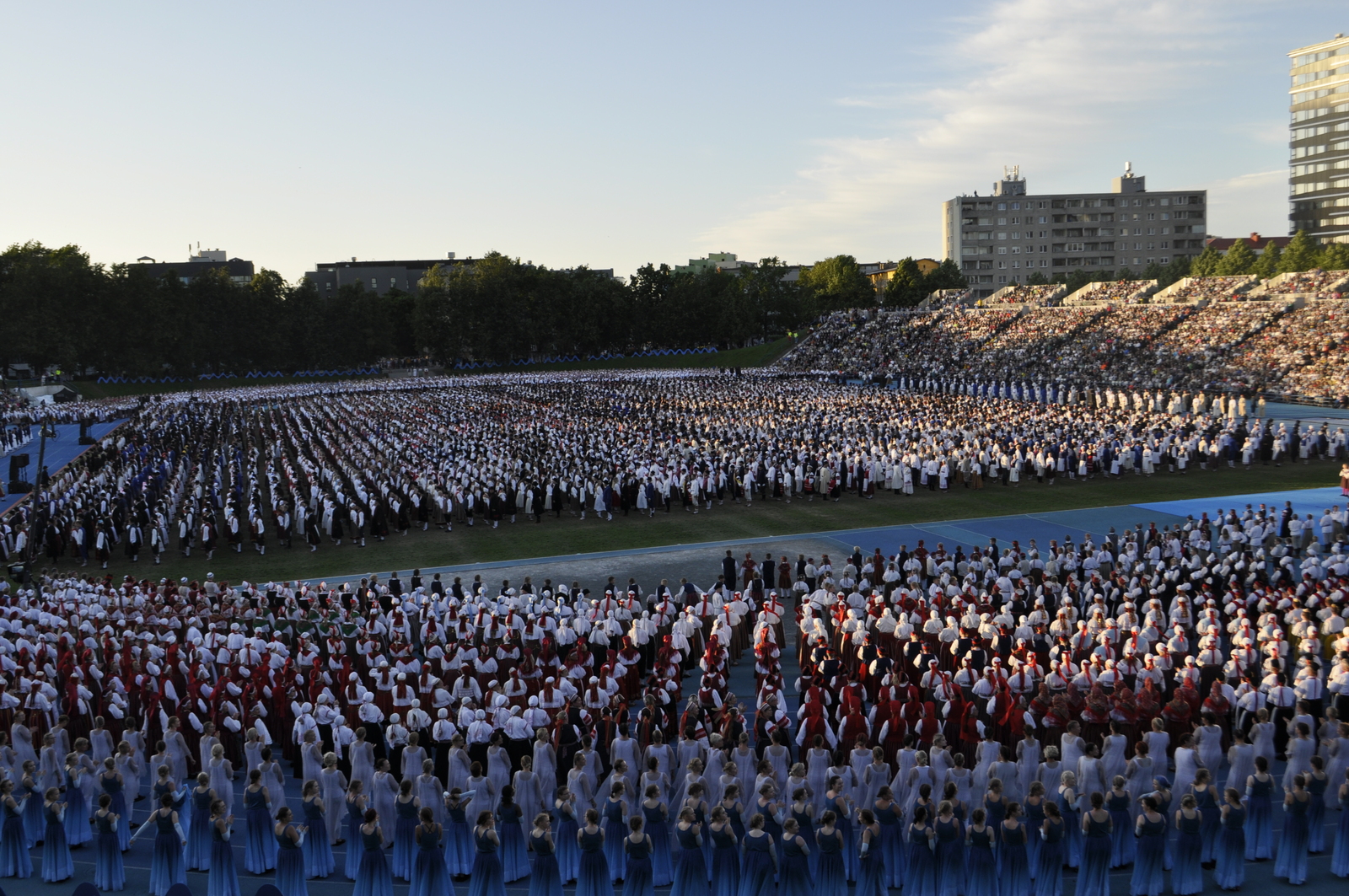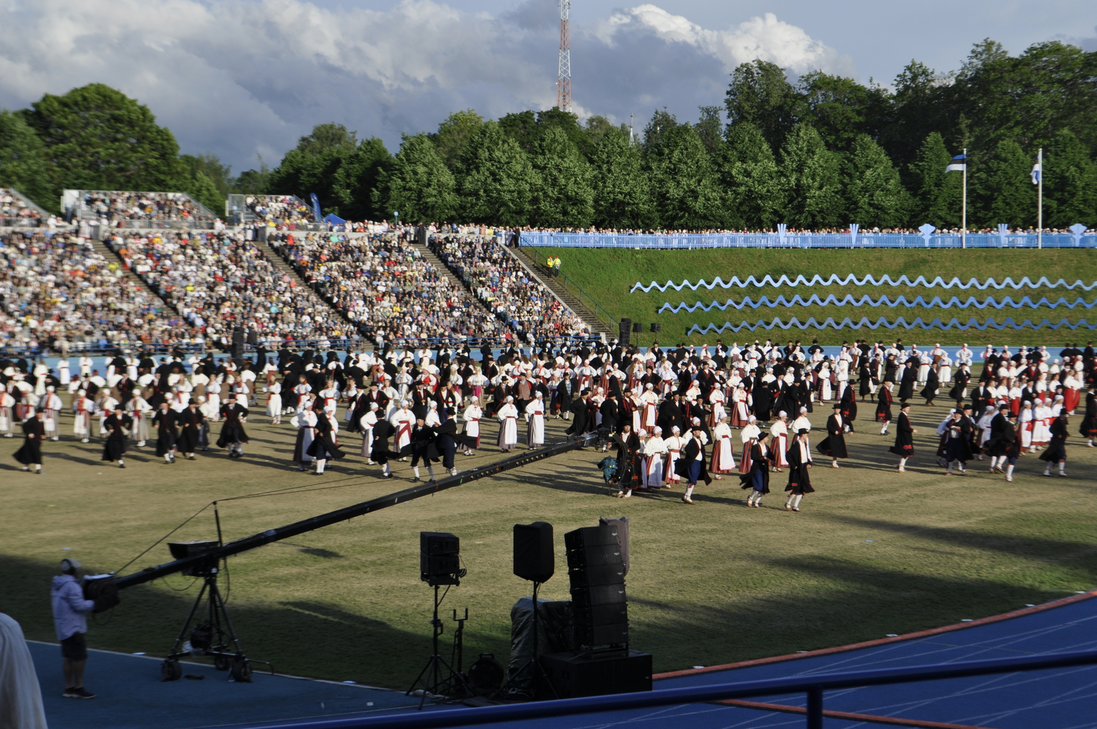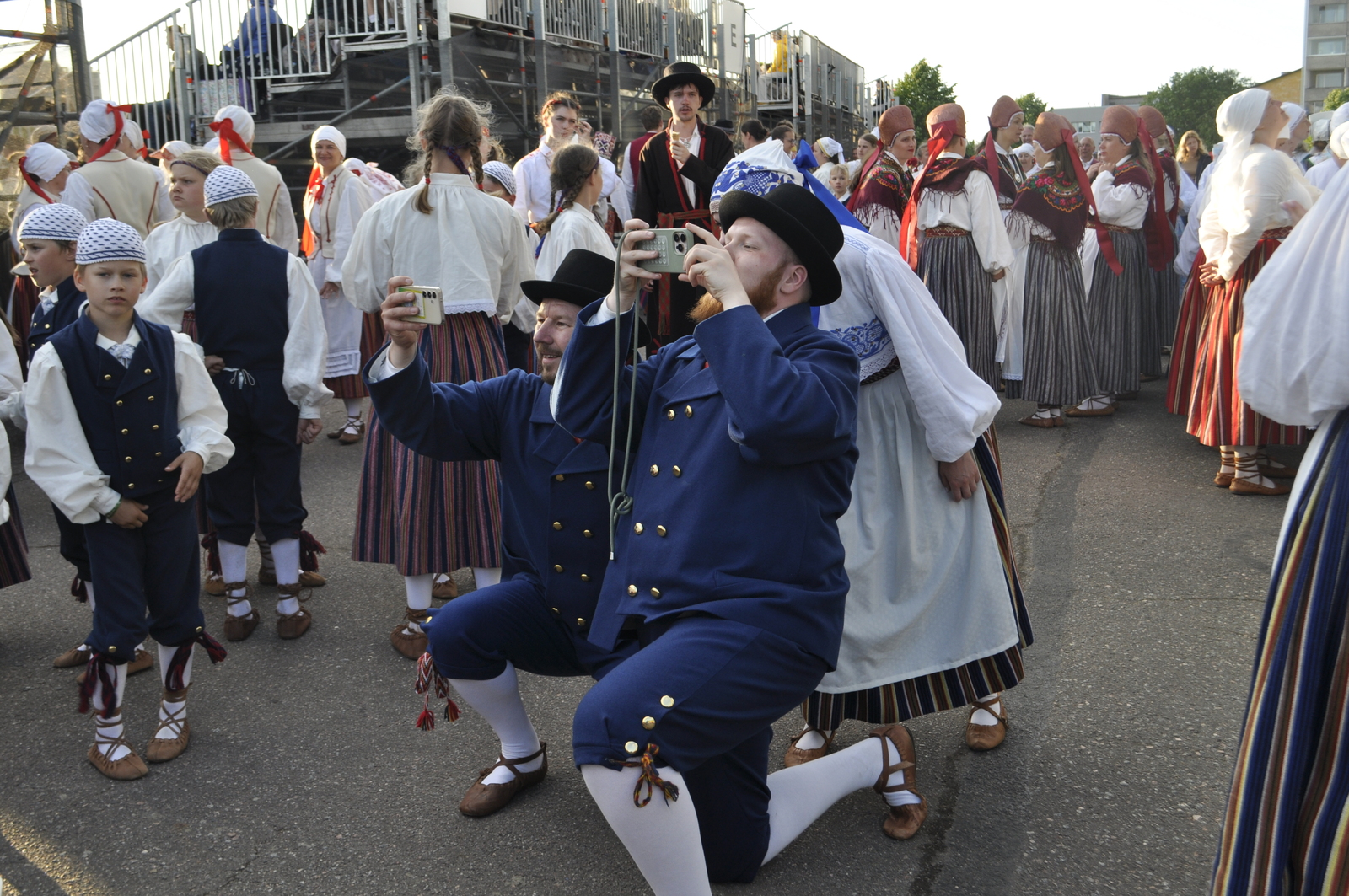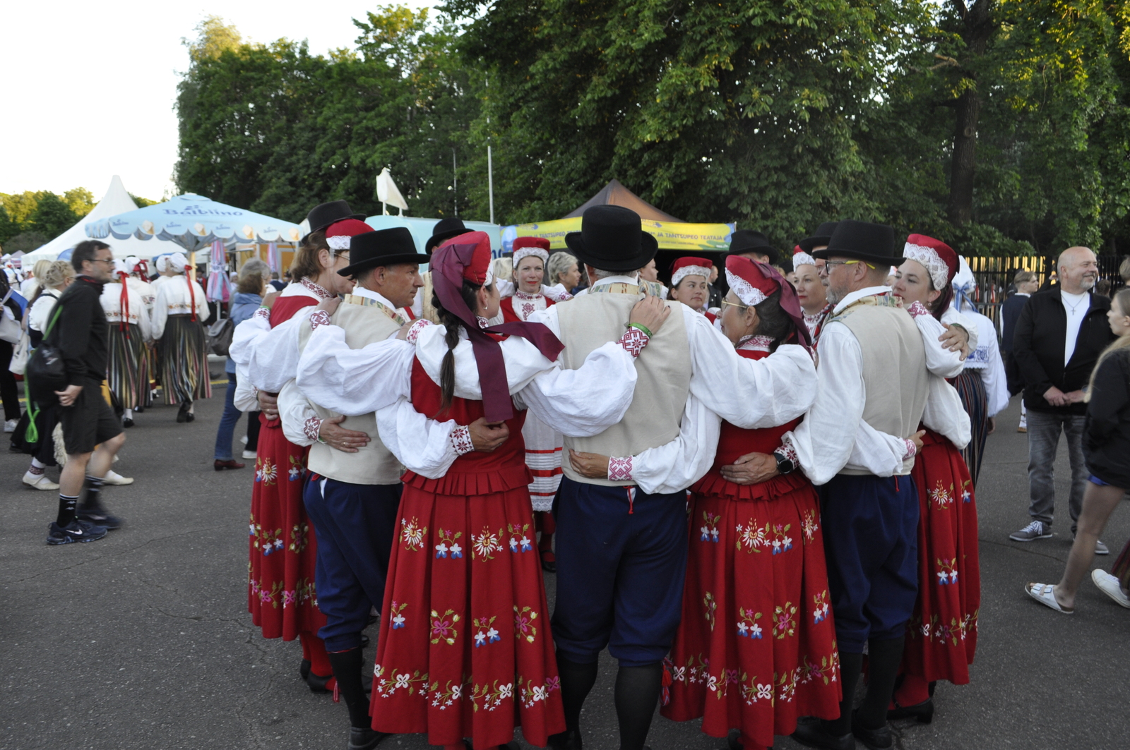 Tuttav kuuekümnendates soomlane Kari (kes juba korduvalt meie laulu-ja tantsupidudel käinud) ja veel vähemalt paarkümmend huvilist avastasid aga Kalevi Keskstaadioni ühe külje peal väikese “katmata” ala, kus praktiliselt mitte miski ei takistanud tantsupeo programmist täiesti korralikku ülevaadet saamast. Tasuta, mitte midagi maksmata!