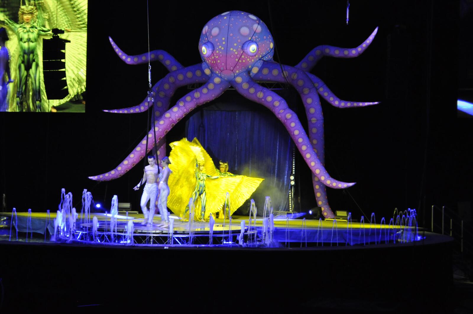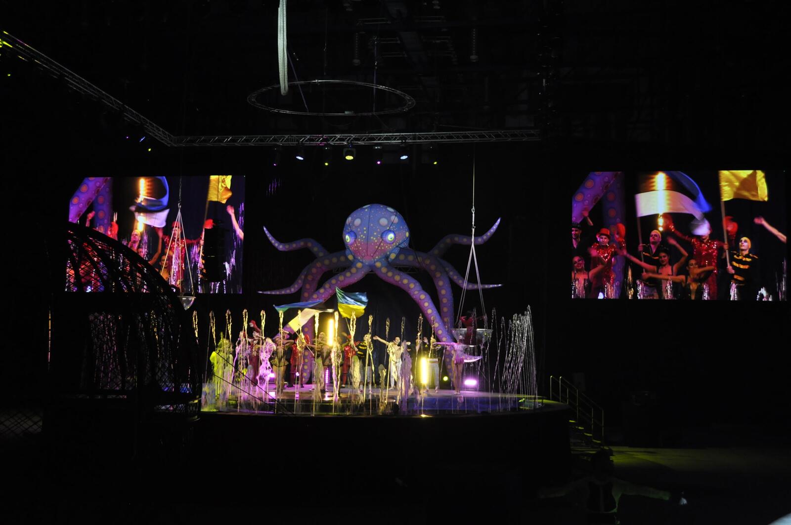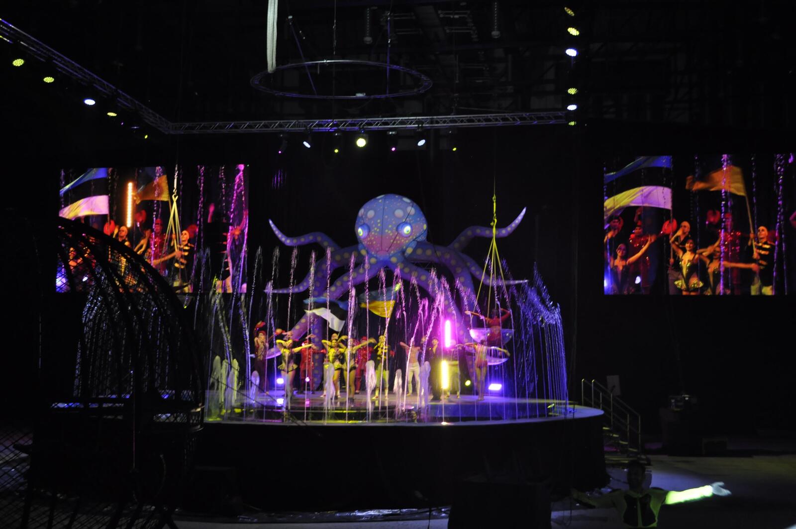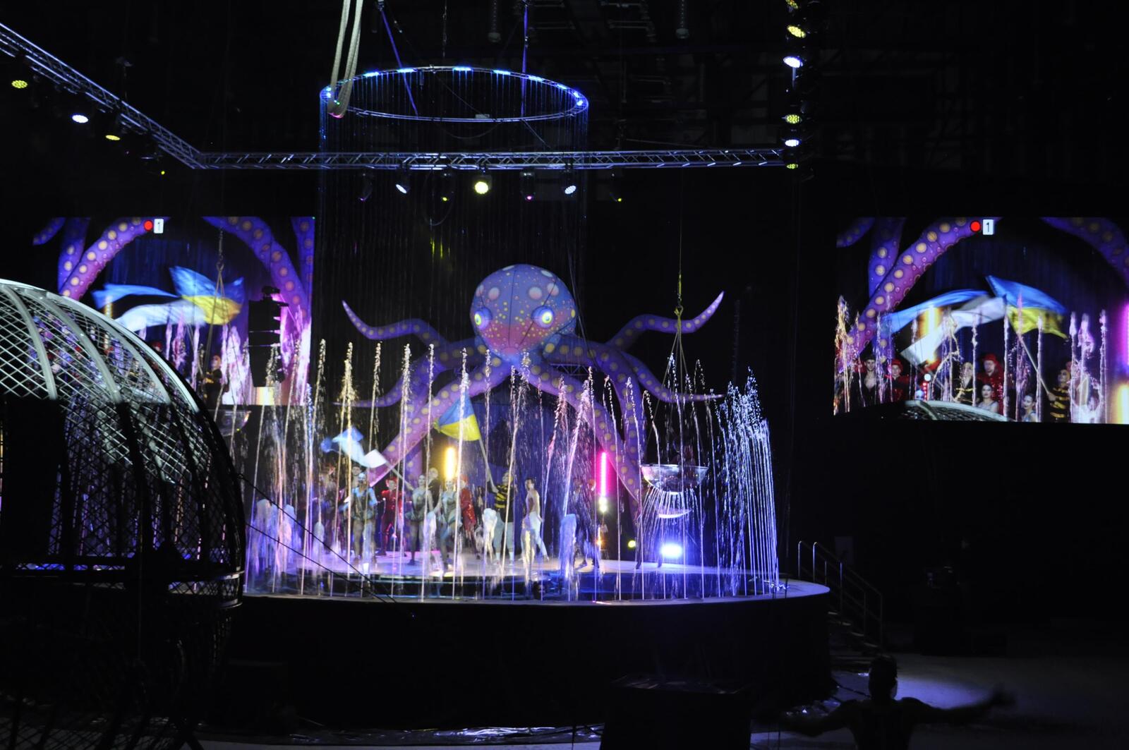 Toimunud suurejoonelise veetsirkuse tagaplaanilt lausa hüpnotiseeris rahvast hiiglaslik kaheksajalg, “octopussy”. Millele pilku heites tuli millegipärast koheselt meelde ka ammune samanimeline 007-e ehk James Bondi kultusfilm, kus pearollis fantastiline Roger Moore. Et kogu Waterlandi show oleks pisidetailideni näha saali kaugematessegi nurkadesse, olid halli ülesriputatud täiendavalt kaks suurt videoekraani.