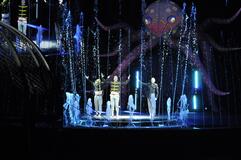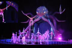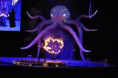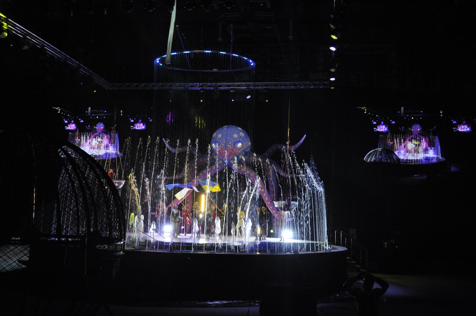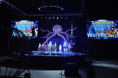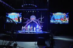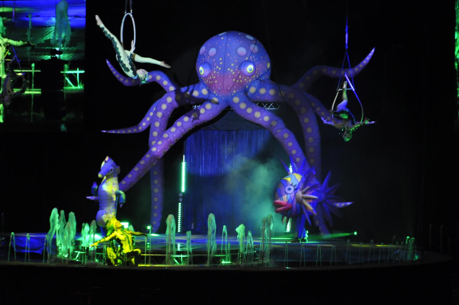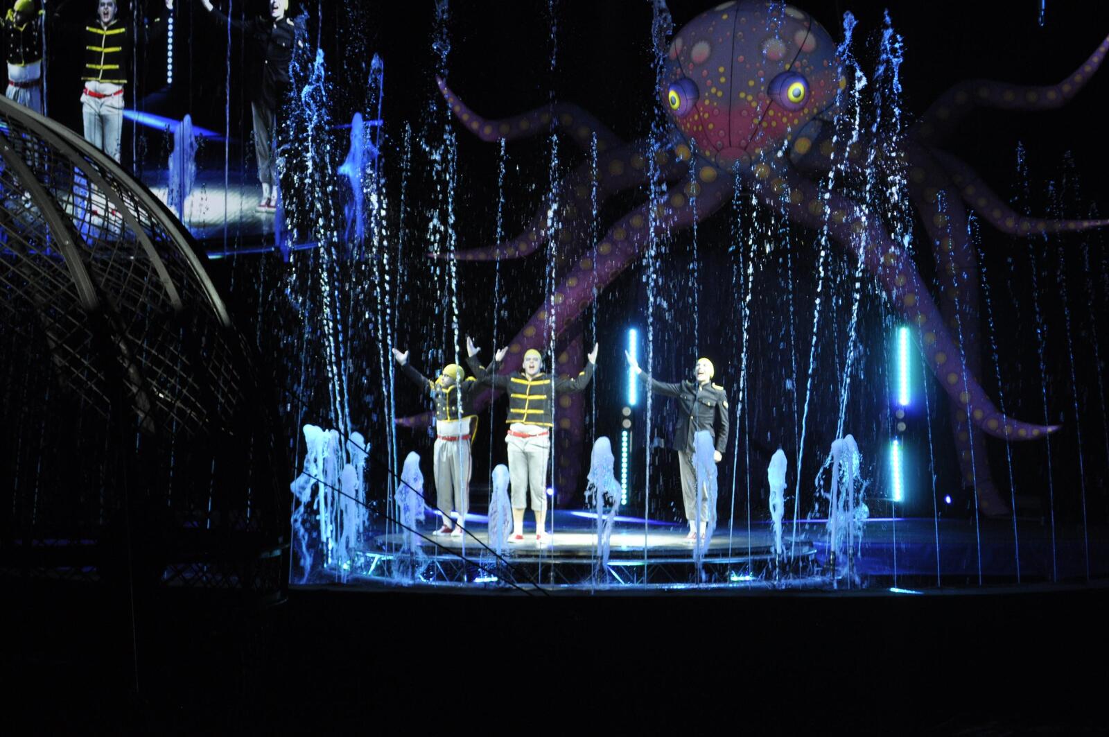 Toimunud suurejoonelise veetsirkuse tagaplaanilt lausa hüpnotiseeris rahvast hiiglaslik kaheksajalg, “octopussy”. Millele pilku heites tuli millegipärast koheselt meelde ka ammune samanimeline 007-e ehk James Bondi kultusfilm, kus pearollis fantastiline Roger Moore. Et kogu Waterlandi show oleks pisidetailideni näha saali kaugematessegi nurkadesse, olid halli ülesriputatud täiendavalt kaks suurt videoekraani.
