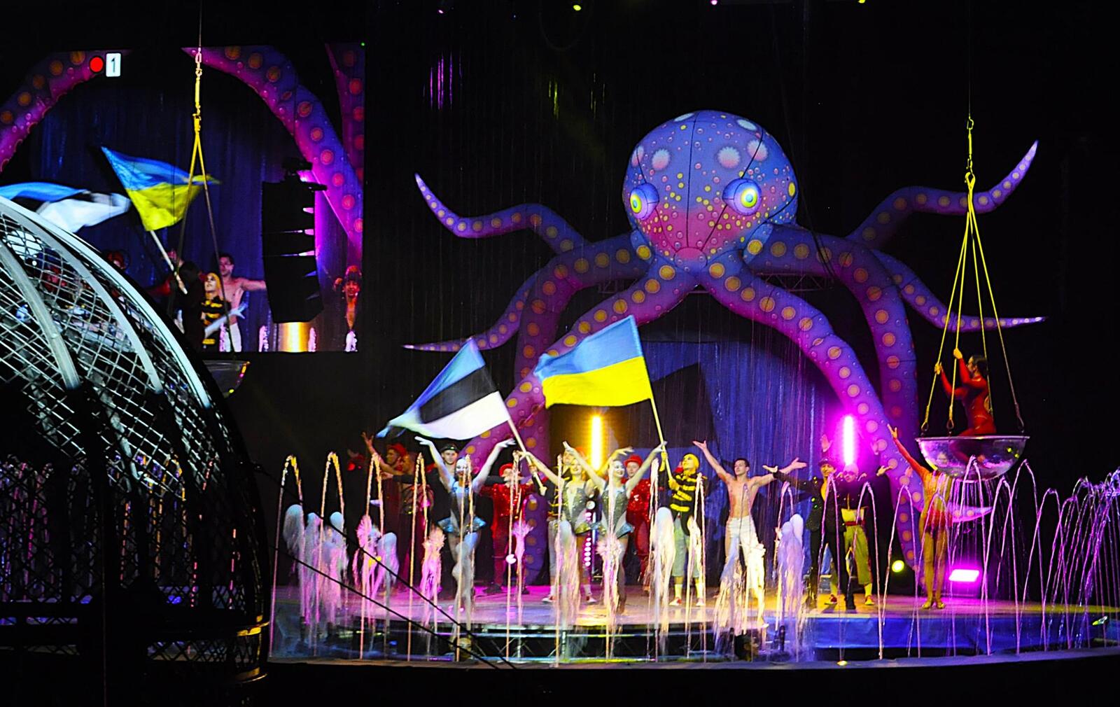 Waterlandi veetsirkuse lõpusirgel tuli kogu rohkearvuline trupp üheskoos publiku ette ja ühtlasi lehvitati suurte Eesti ja Ukraina lippudega. Rahvale see meeldis, näis et läks väga korda ja tunne muutus ülevaks.